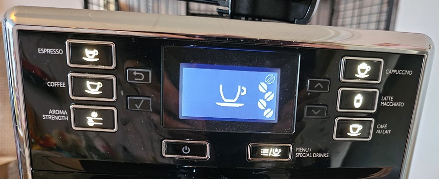 De automaat werkt zowel op bonen als op gemalen koffie.